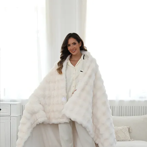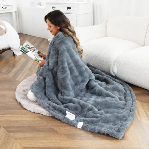 Made from incredibly soft faux rabbit fur, the Faux Rabbit Fur Electric Throw Blanket—also a luxurious rabbit faux fur electric blanket—provides exceptional comfort. This rabbit faux fur electric blanket features an LCD controller with six customizable heat settings and a versatile 1-9 hour timer for personalized use. Its advanced carbon fiber heating system ensures efficient, even heat distribution, complemented by a reliable overheat protection safety feature that makes this rabbit faux fur electric blanket both cozy and secure.
