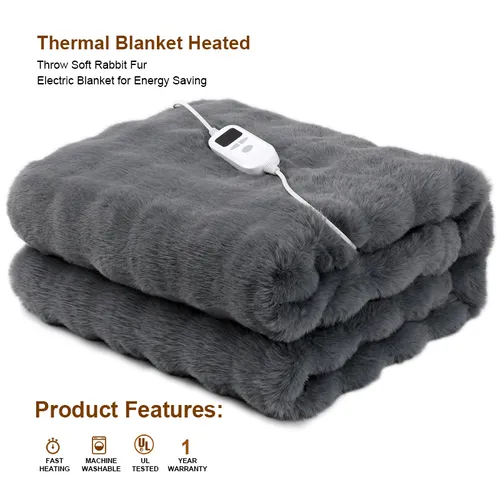 2. Whole line constant temperature rabbit faux fur electric blanket with overheating protection system